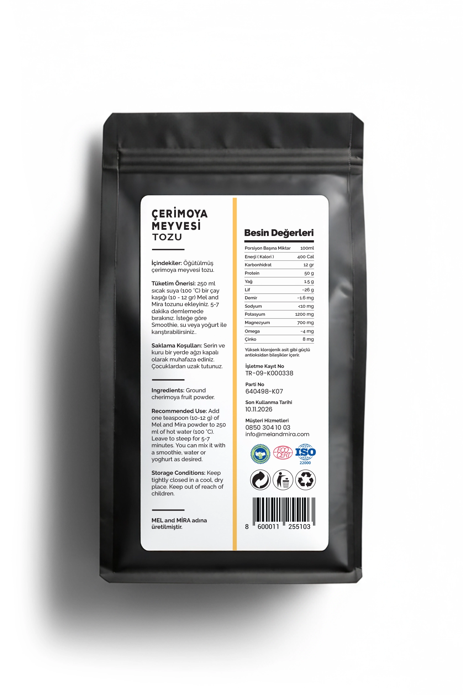 Çerimoya meyvesi tozu, tropikal meyve karakteri ve doğal tatlı aromasıyla tariflere yumuşak bir lezzet dokunuşu kazandırır. Kullanıcı bu ürünü smoothie, tatlı ve fonksiyonel karışımlarda pratik şekilde kullanır ve çerimoya meyvesi tozu sayesinde tariflerde dengeli bir aroma elde eder.