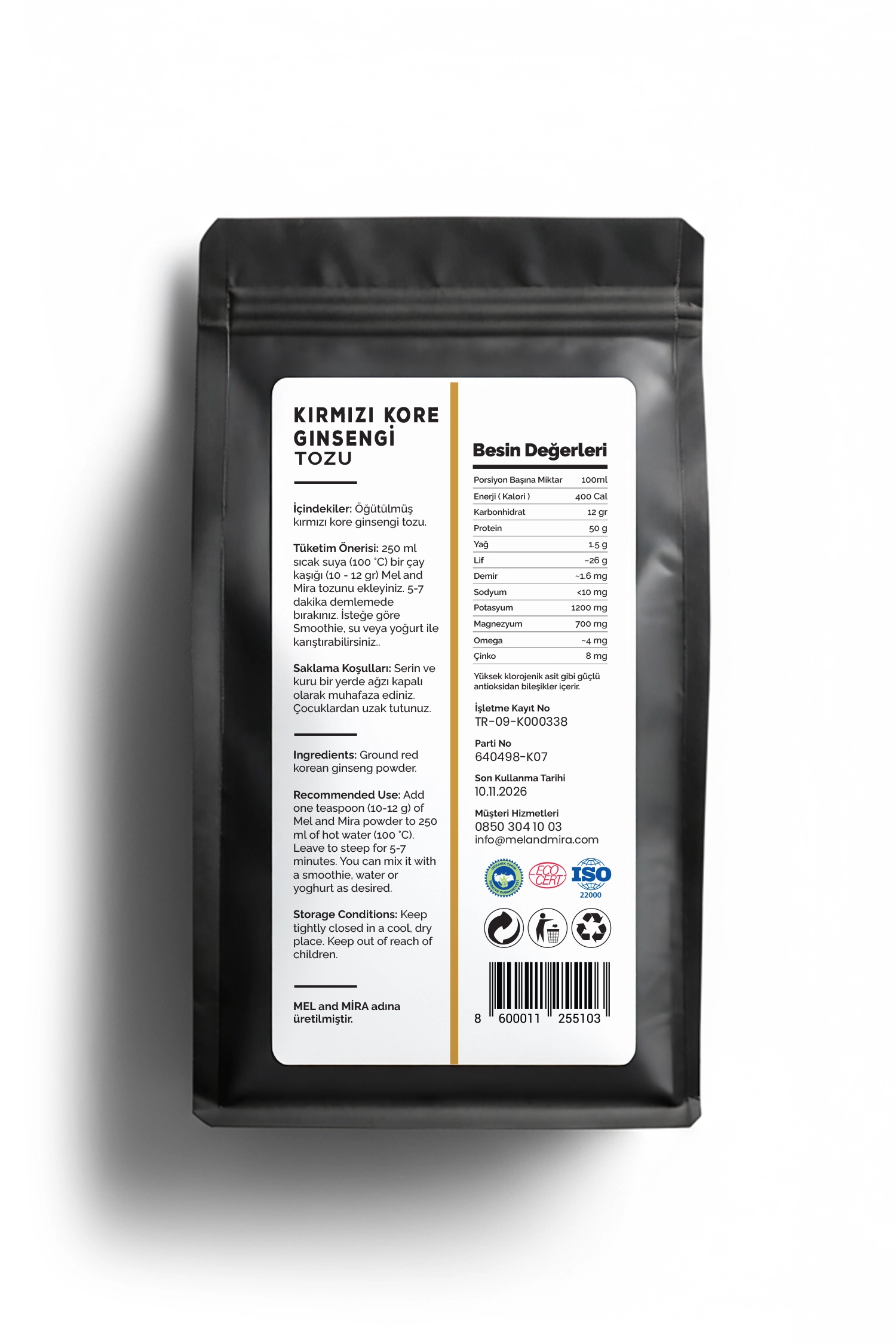 Mel and Mira Kırmızı Kore Ginseng Tozu, Asya’nın en değerli adaptogen bitkilerinden biri olan ginseng kökünden elde edilmiştir. Enerji, dayanıklılık ve zihinsel odaklanmayı artırmaya yardımcı olan bu toz, günlük yaşamda doğal bir enerji ve adaptogen desteği sağlar. Smoothieler, kahve, çay ve tariflerle kolayca kullanılabilir. %100 saf ve katkısız formülü ile yüksek kalite garantisi sunar.