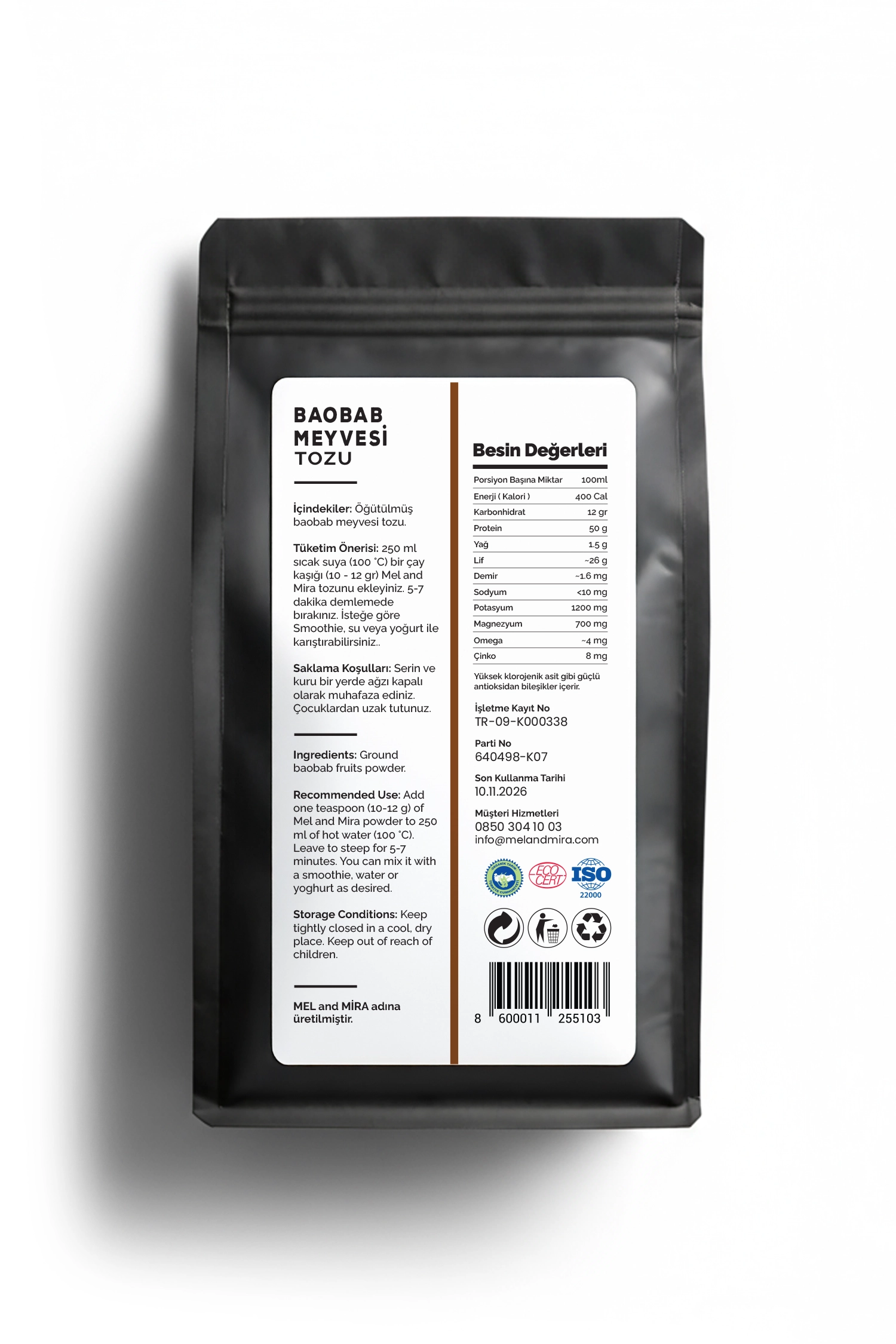 Mel and Mira Organik Baobab Meyvesi Tozu | C Vitamini ve Antioksidan Zengini Saf Süperfood