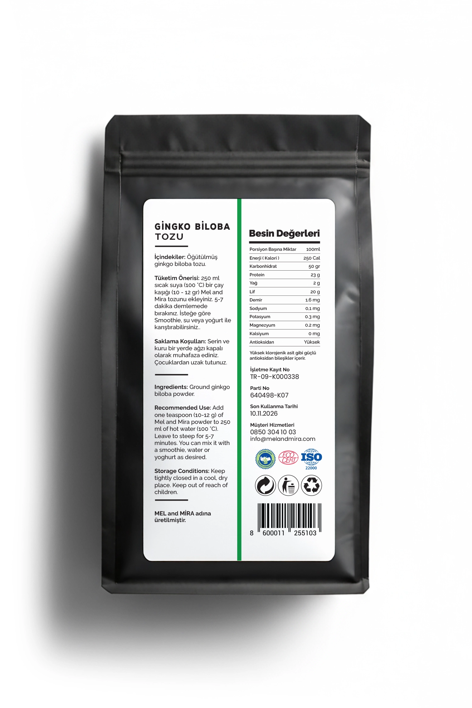Mel and Mira Organik Ginkgo Biloba Tozu | Zihinsel Odaklanma, Hafıza ve Enerji Desteği