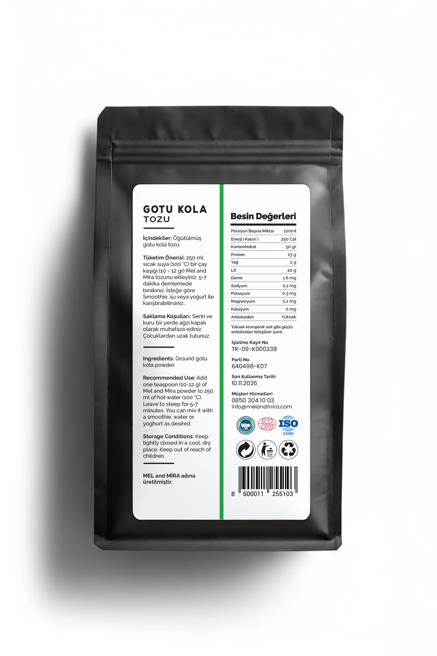 Mel and Mira Organik Gotu Kola Tozu | Zihinsel Odaklanma, Hafıza ve Genel Sağlık Desteği