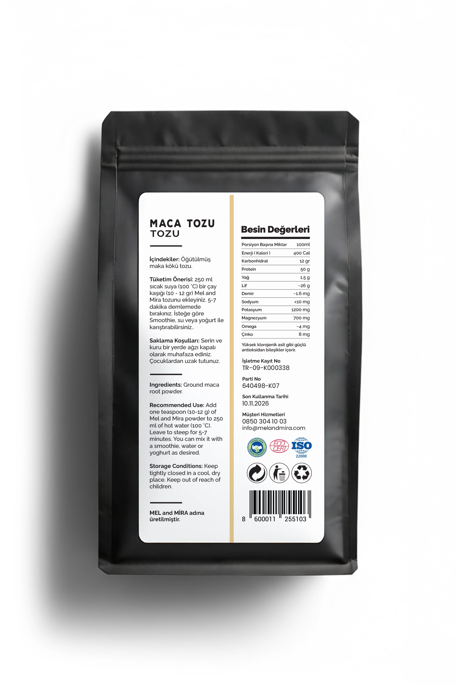 Mel and Mira Organik Maca Kökü Tozu | Enerji, Dayanıklılık ve Hormonal Denge için Saf Maca