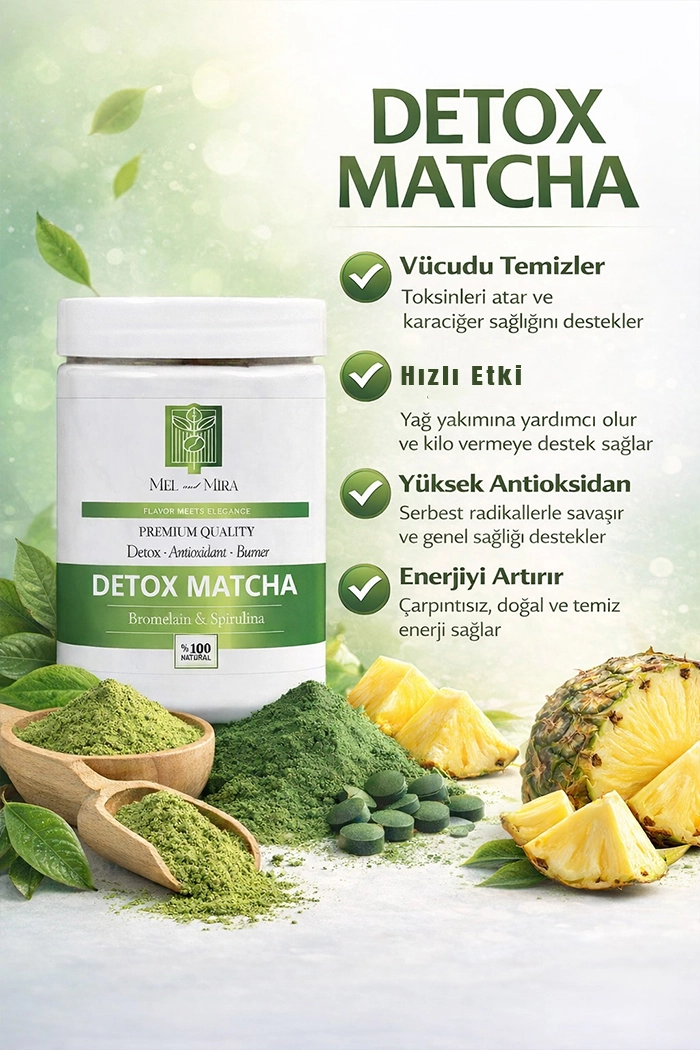 Premium Japanese Detox Matcha Form Çayı 200g | Bromelain & Spirulina ile Hızlı , Doğal Detoks ve Enerji Desteği