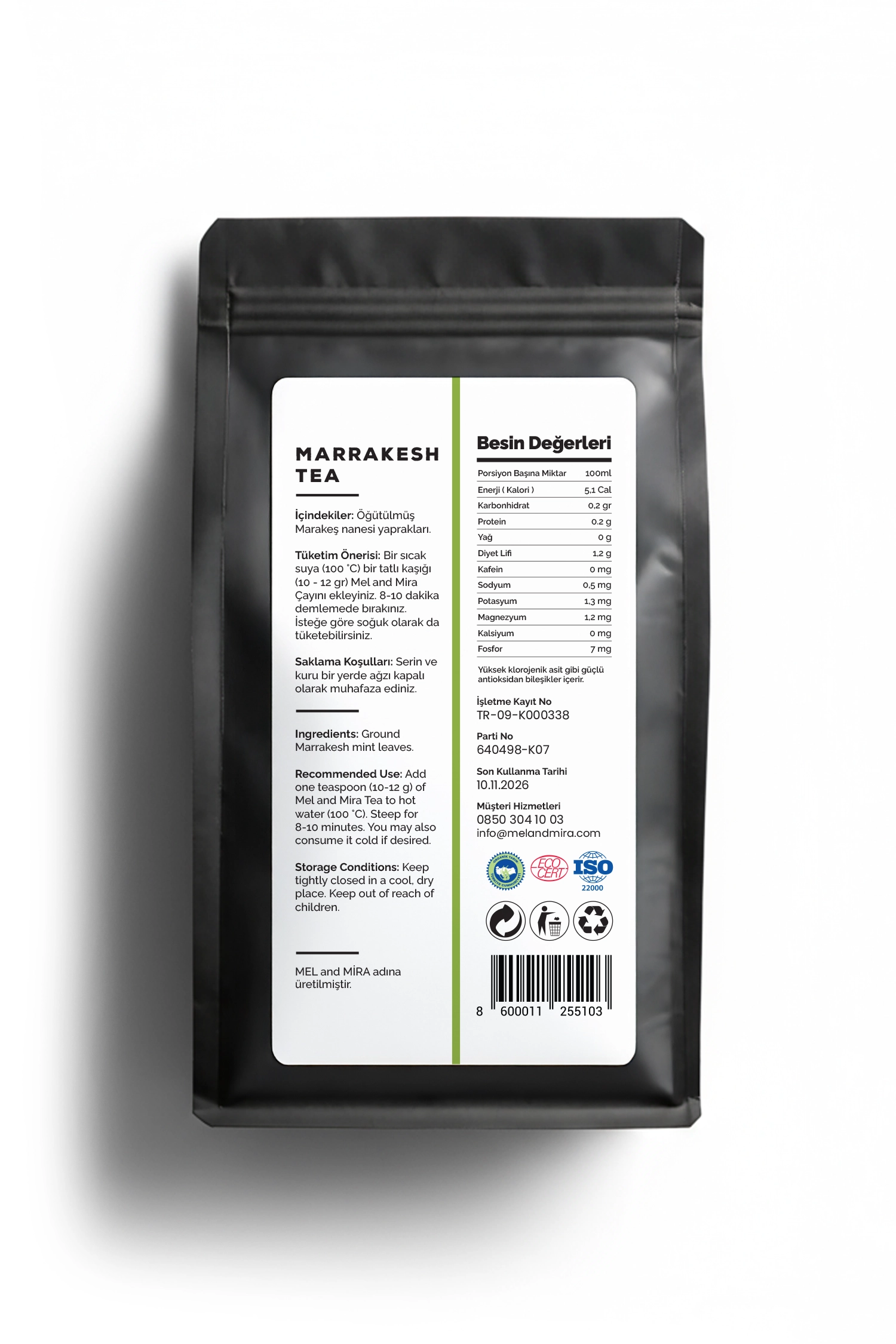 Mel and Mira Premium Naneli Marakeş Çayı – Ferahlatıcı ve Aromatik Bitki Çayı | Zihinsel Canlılık ve Sindirim Desteği | Saf ve Katkısız