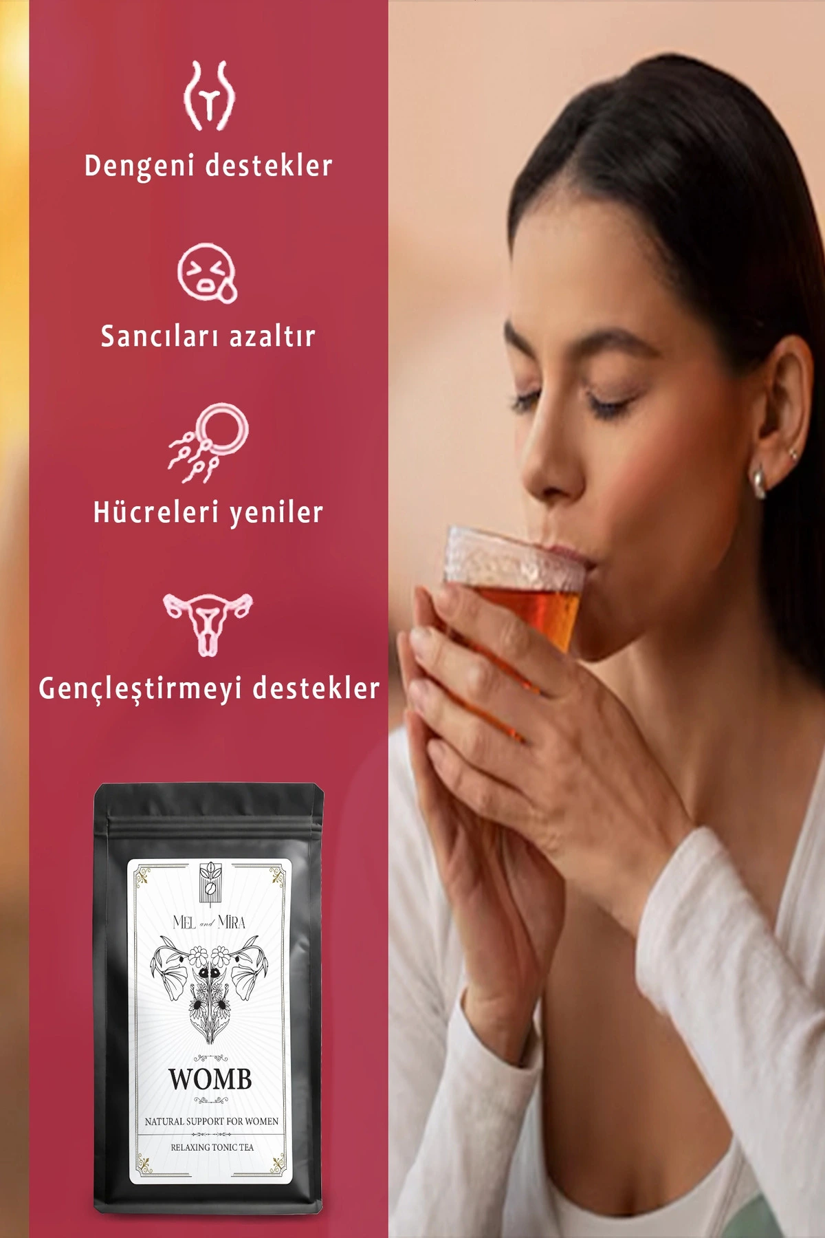 Rahim Sağlığı ve Regl Dönemi Çayı, kadınların döngüsel ihtiyaçlarına uyum sağlayan bitkisel içerikleriyle dengeli ve destekleyici bir çay deneyimi sunar. Özenle seçilmiş bitkiler, regl döneminde oluşan hassasiyeti yatıştırmaya ve konforu artırmaya yardımcı olacak şekilde bir araya getirilmiştir. Günlük rutine kolayca entegre edilebilen bu özel harman, doğal ve dengeli bir destek arayanlar için ideal bir alternatiftir.